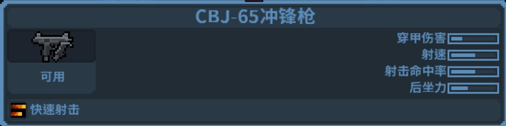 上面两把的整合体,比CBJ-65射速更快、射程更远、弹道更稳、有消声。但伤害略低