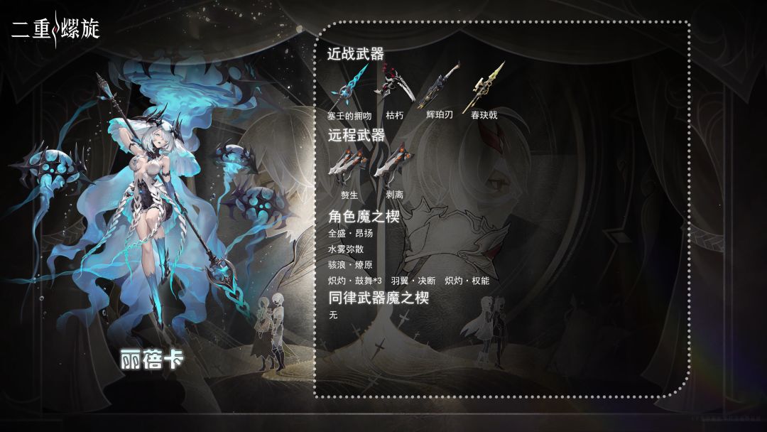 后续的是角色紫魔之楔的配装。输出是按前台推荐的武器。辅助是以后台推荐的武器(一般辅助只推荐了一把武器,玛尔洁是比较无所谓配了俩)
