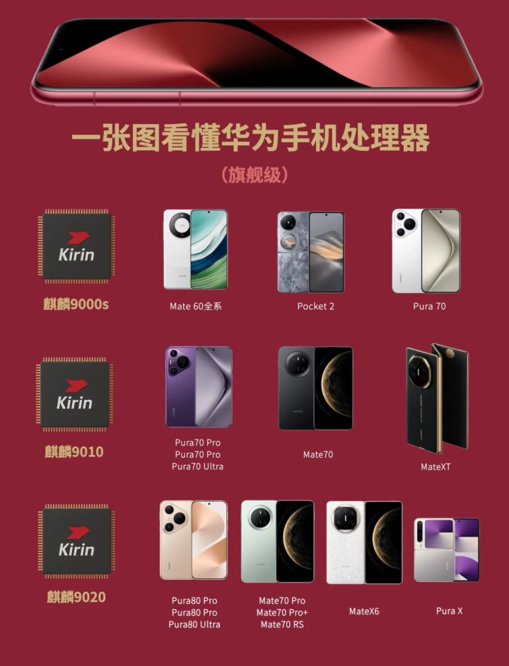目前华为的旗舰处理器主要有三款,分别是麒麟9000S、麒麟9010和麒麟9020。
