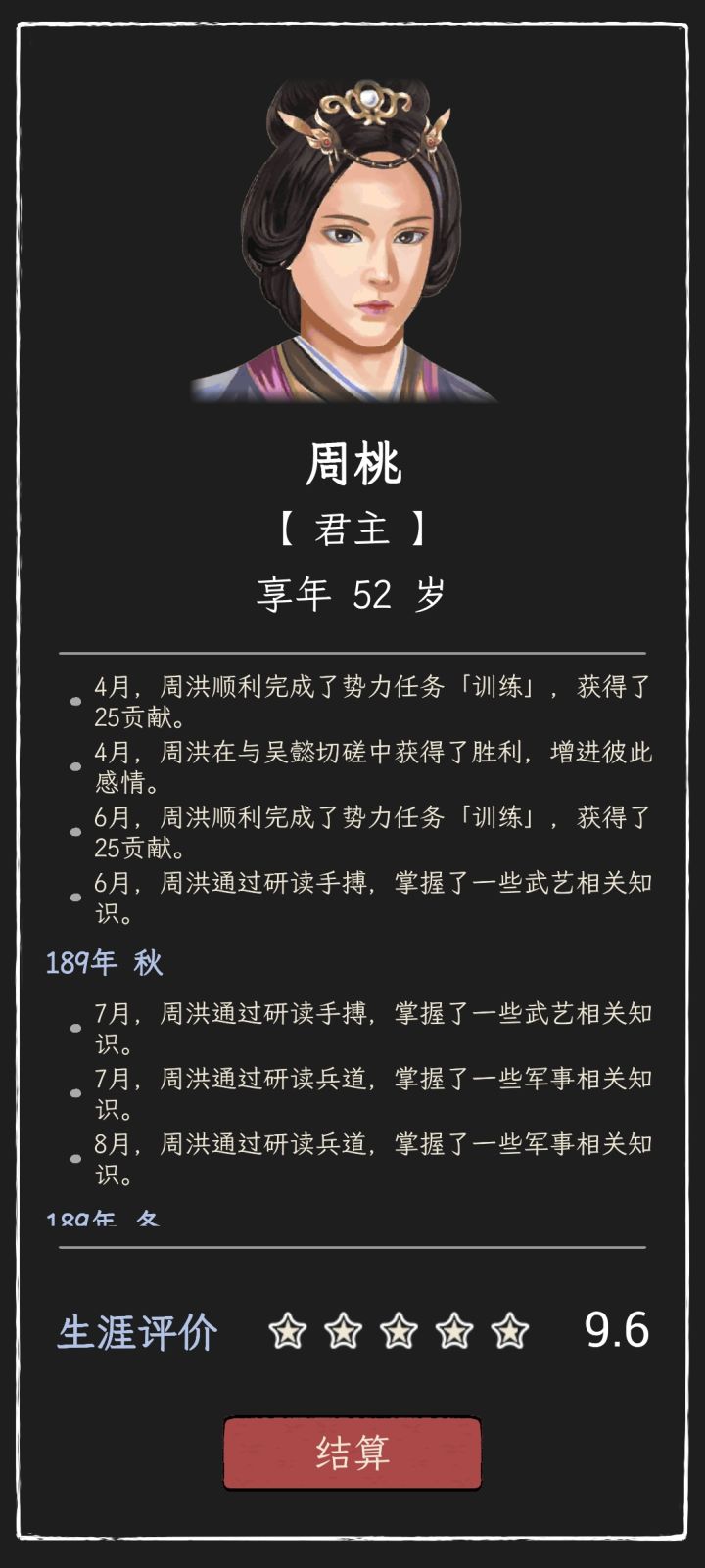 继续积累战功,直到一品,宣布独立,这时的游戏才刚刚开始。期间可以找亲密100的联姻,产下后代,等自己挂了可以继续用后代玩。