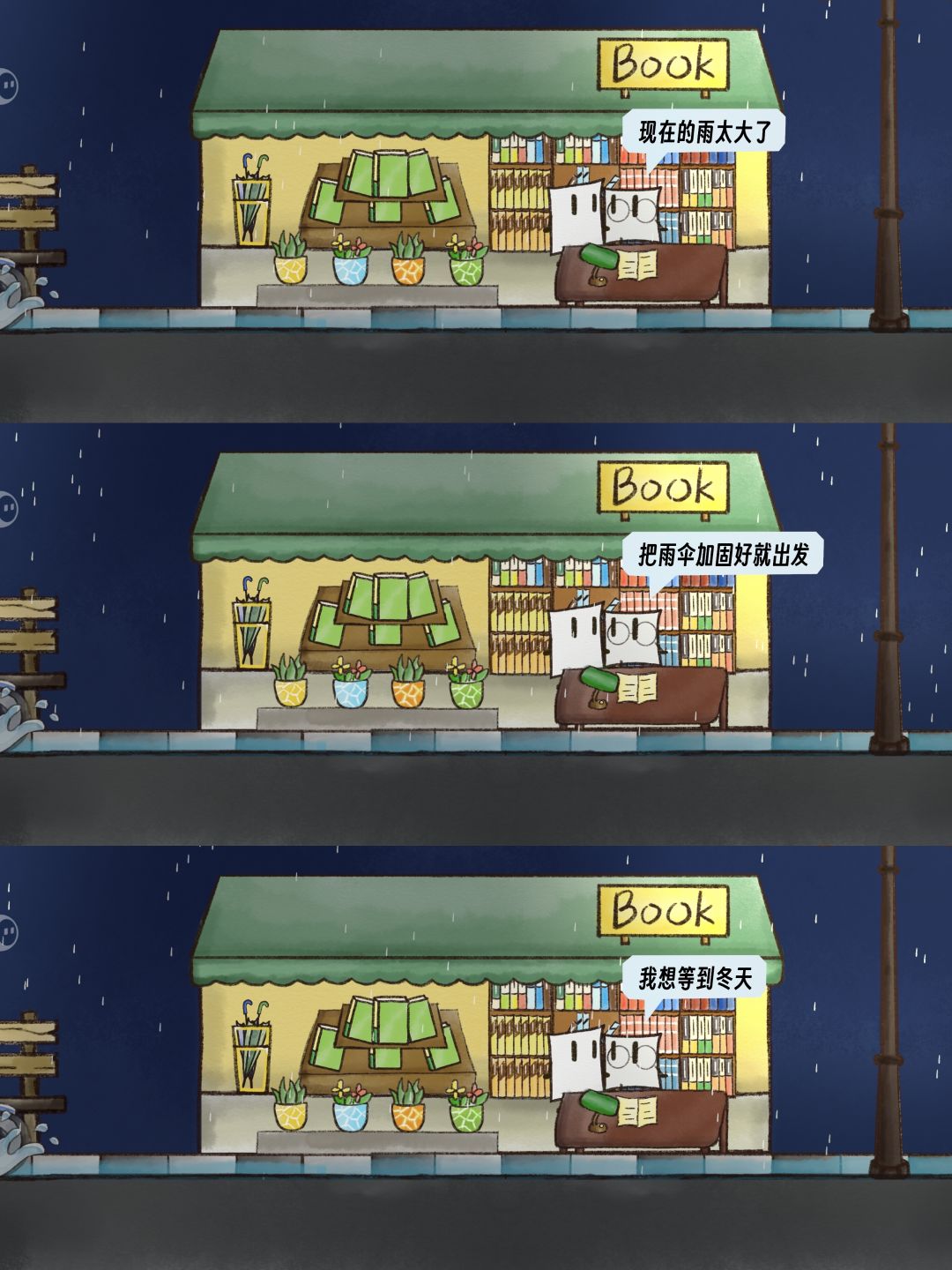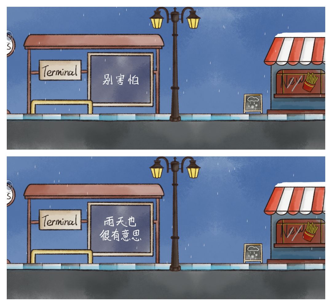 雨天 黄色方块