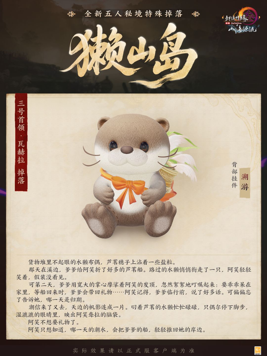 成功挑战全新五人秘境“獭山岛”则有机会获取背部挂件“溯游”,水獭布偶憨态可掬,十足可爱。