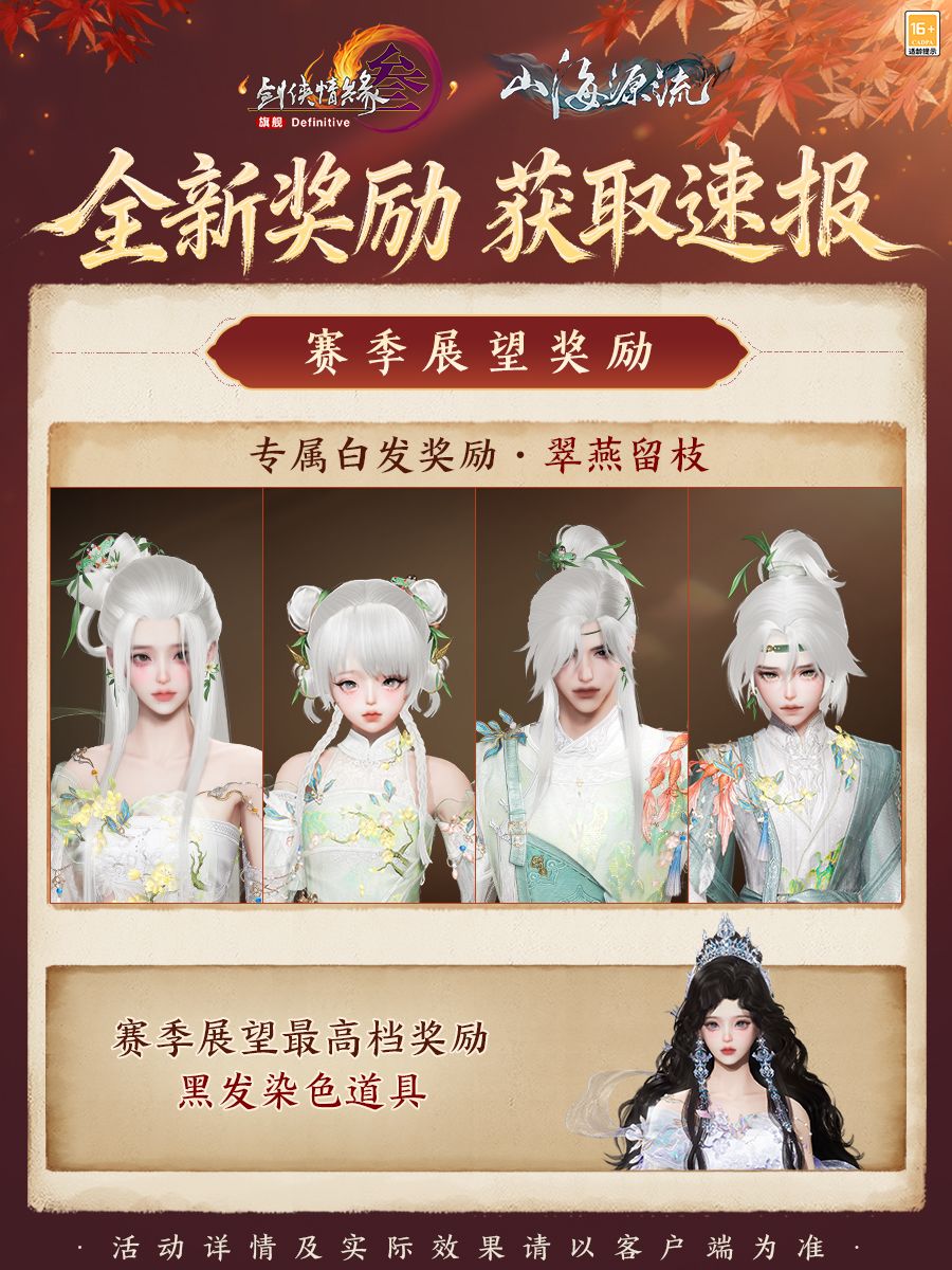 赛季展望专属白发奖励“翠燕留枝”于发丝间巧妙融入淡淡绿意,于素雅间添色俏皮与清新。除此之外,赛季展望最高档奖励新增黑发染色道具,自如搭配,从“头”焕新!