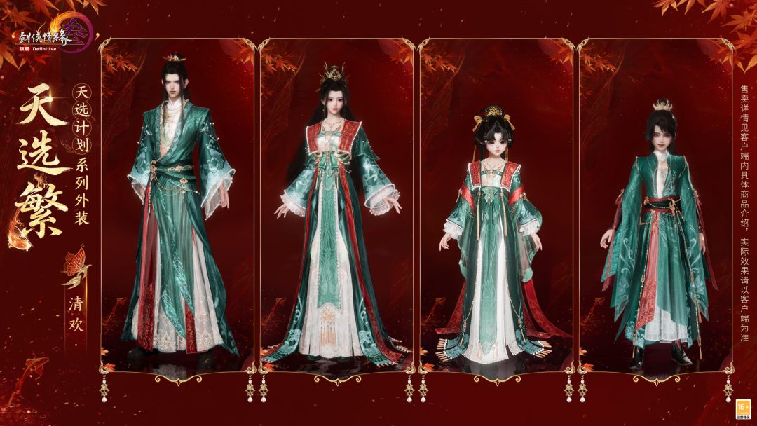 金缕纤纤裁碧穹,玉露轻沾曳影中,全新天选计划系列特效外装“天选繁”独具雅韵气度,端方合度,收袂显雅正之仪。