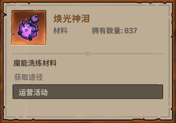 - 分解获得的“幻光神泪”可用于洗练“传奇及以上”品质的魔能装备,变更其极品词条的效果和强度。