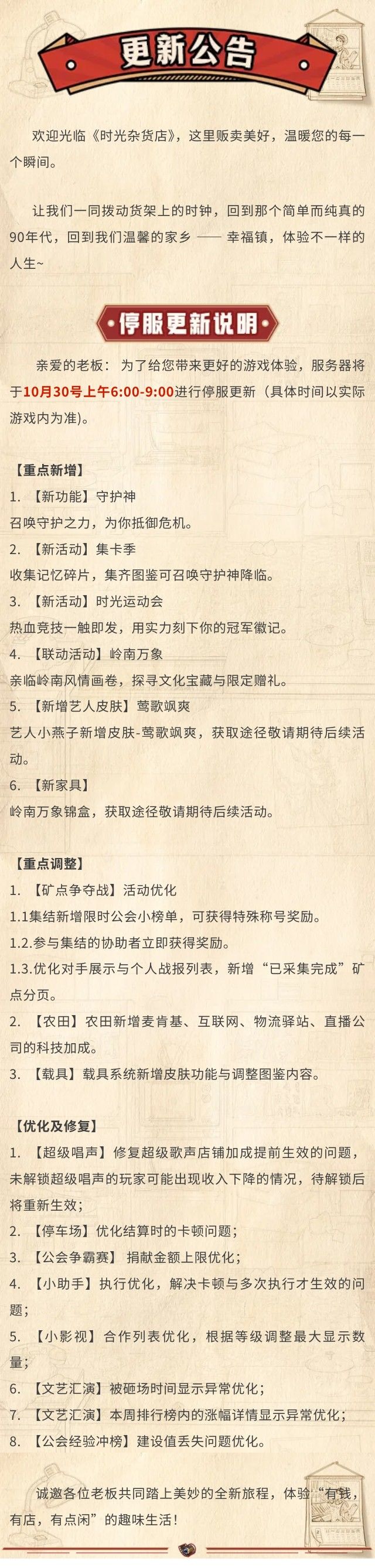 【更新公告】10月30日停服更新说明