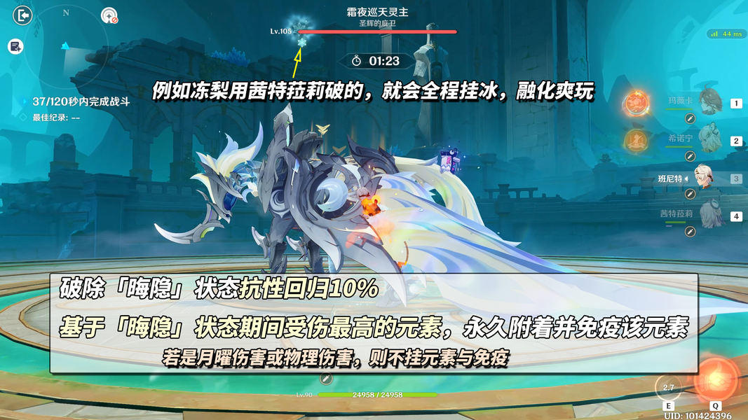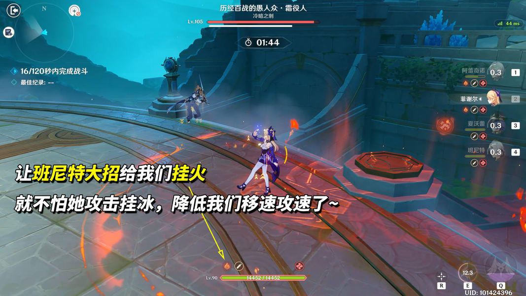 ②霜役人攻击会给角色挂冰,冰附着期间会降低移动速度、攻击速度,操作手感直接变形!若你对自身的闪避躲技能手法不够自信,推荐在队伍内放个班尼特,领域内自挂火与冰抵消。