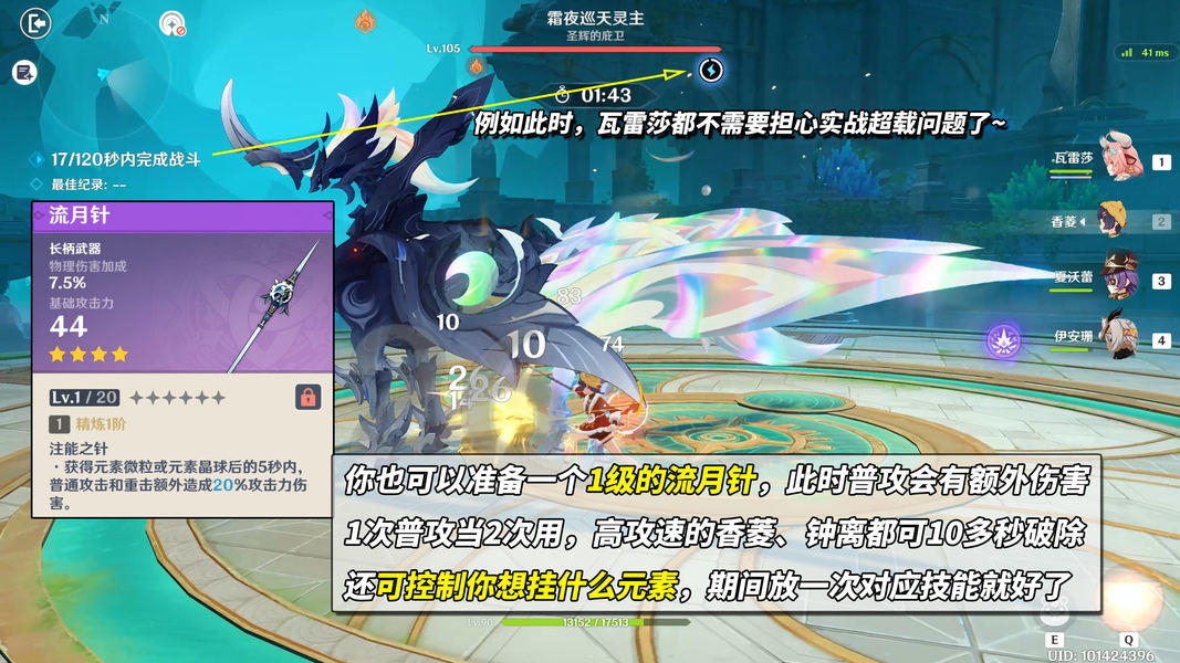 其次可考虑行秋、夜兰、流月针钟离、流月针香菱、燃烧反应、祭礼蓝砚、丝柯克非战技物伤普攻这些经典高频攻击。我们只需要注意,别让BOSS免疫主C元素即可,操作妥当需要的挂元素,打反应还有保障。
