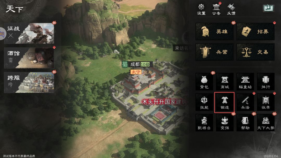 宝物系统会在国家建设锻造台后解锁,基本在开服第二天就会开启,随着锻造台的等级提升,会开放更高阶的宝物,届时可前往功能界面的锻造中获取宝物。