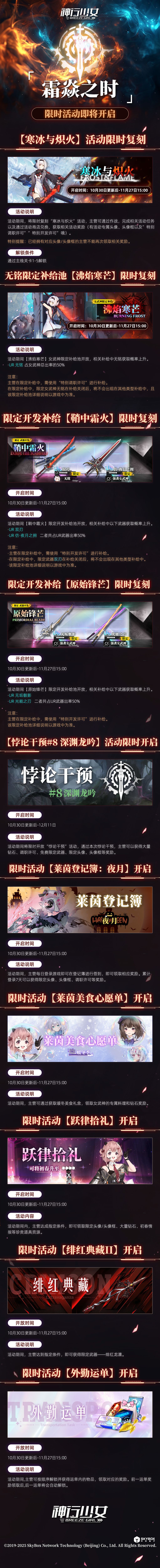《神行少女》全新版本【霜焱之时】即将上架,不仅有限定女武神无铭限时复刻,更有丰富的福利等着各位哦~!就让我们借着火热出炉的全新版本,让气温升高吧!