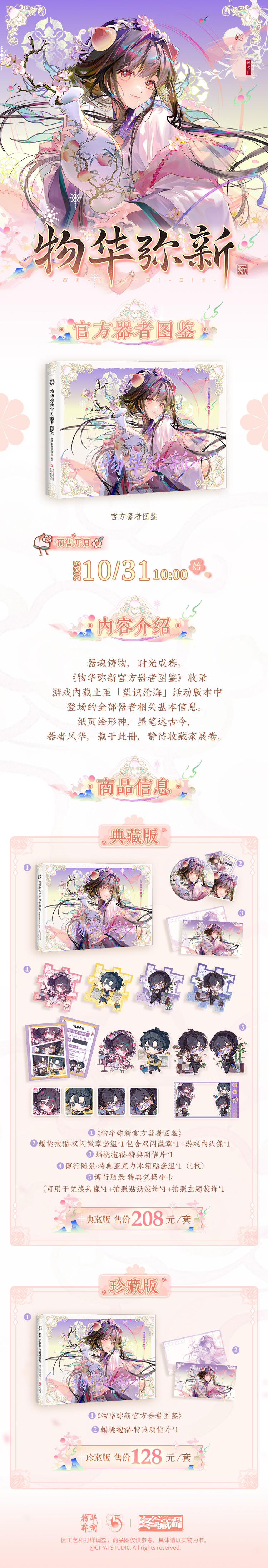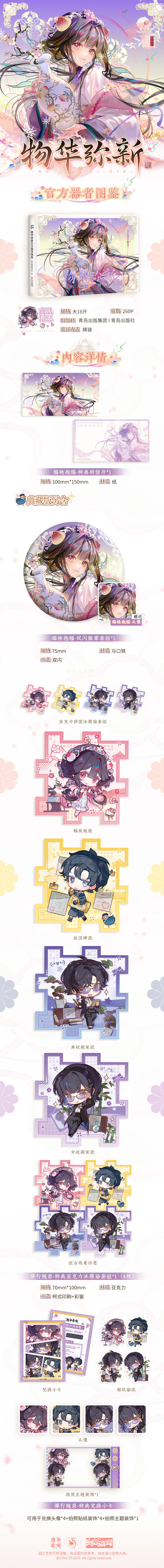 2.在小程序购买《物华弥新官方器者图鉴》典藏版,即可获得专属赠礼:前3000册,每册均将额外加赠「蝠桃抱福·特典收藏卡」一张!