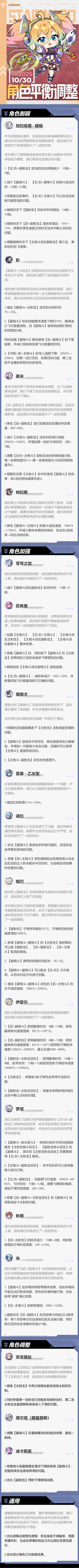 各位团长好,为了让团长们有更好的游戏体验,我们决定在10月30日游戏更新后对部分角色进行平衡调整,改动如下: