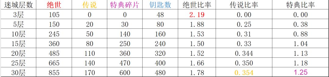 2. 特典传说碎片,最佳是30层,但存钥匙所需时间较长。