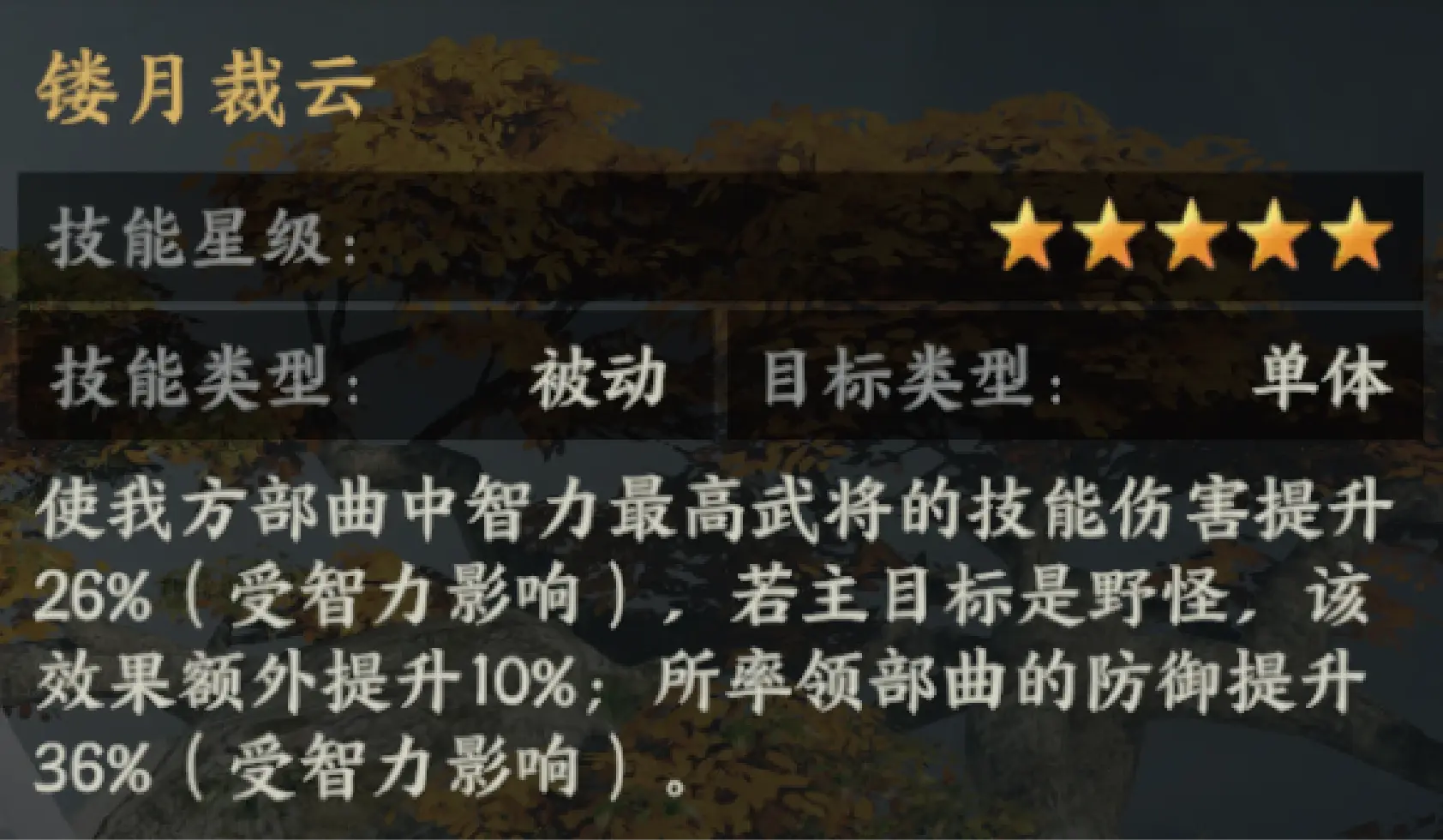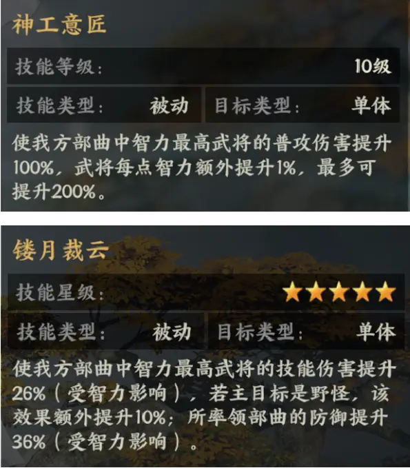 ●黄月英的兵书【镂月裁云】提供稳定的技能伤害加成,与易伤效果相得益彰。