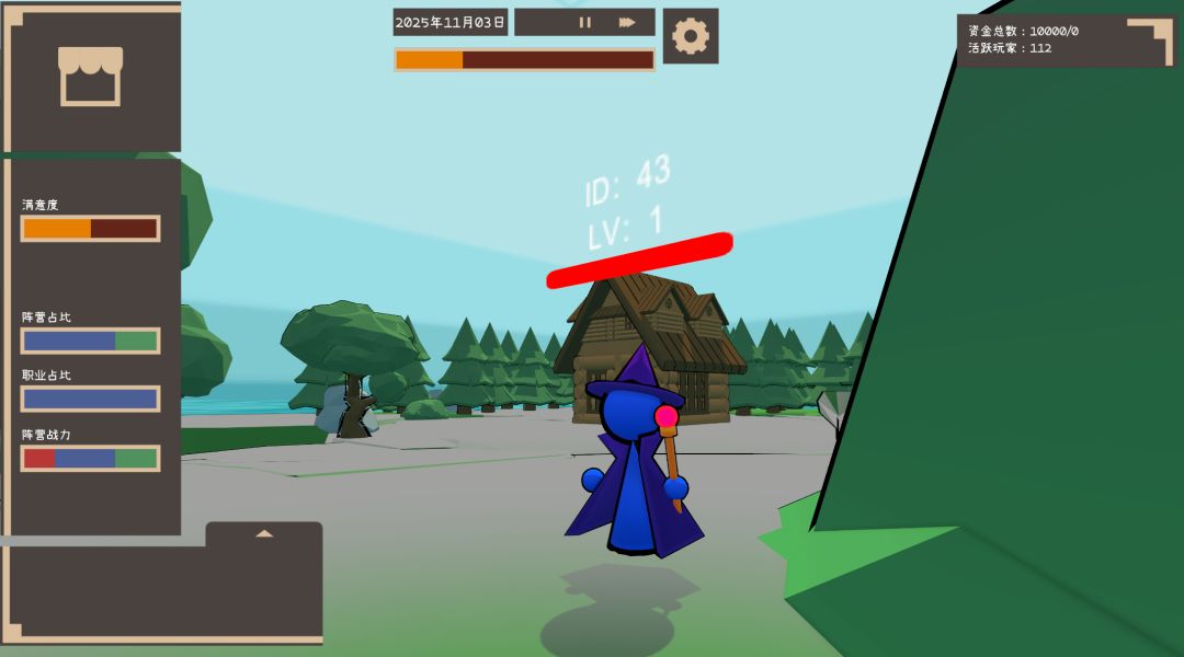 在游戏中,玩家需要扮演一位MMO游戏的策划,在是否耗费资源维护bug与满足玩家要求之间做出选择,同时满足老板的最低流水需求,将游戏长久地运营下去。