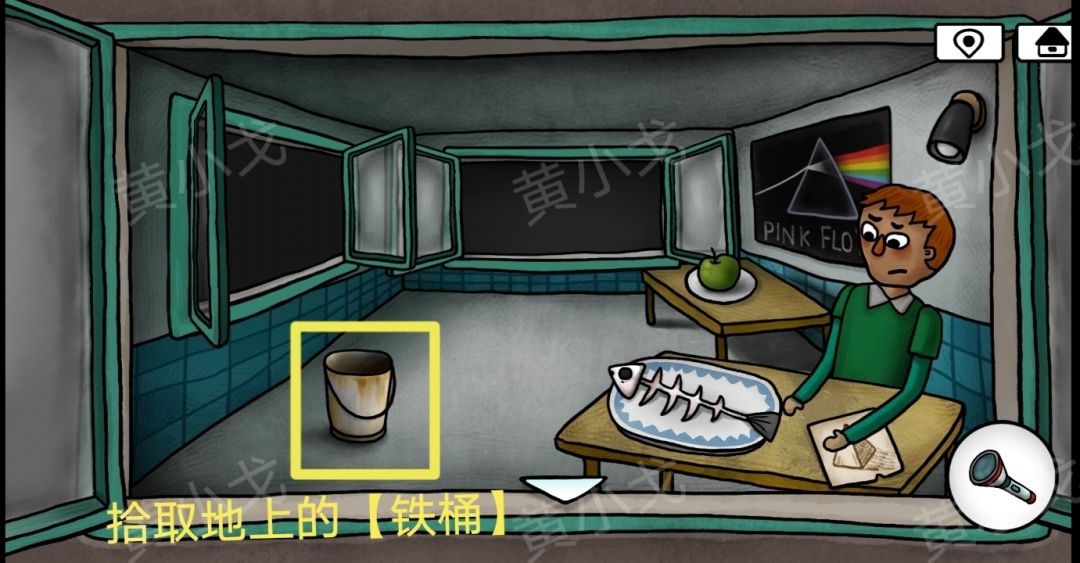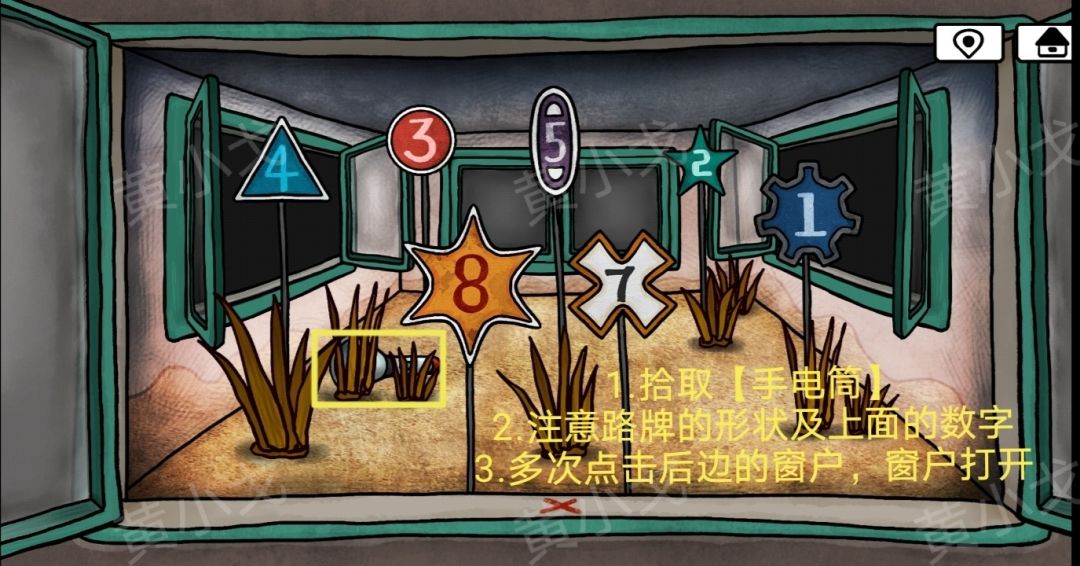 10.拾取地上的【手电筒】;点击中间的窗户三次,打开窗户,解锁新场景