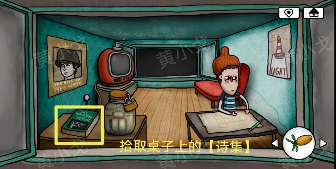 6.与老头对话,得知他喜欢看书;拿【诗集】给他;拾取掉落的【钳子】,打开窗户,解锁新场景