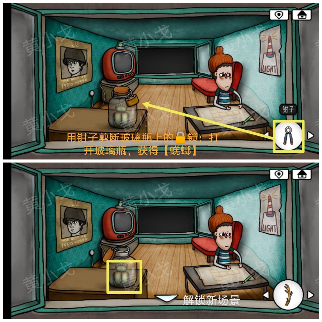 8.用【钳子】剪断玻璃瓶上的锁,打开玻璃瓶,获得【蜣螂】,解锁新场景