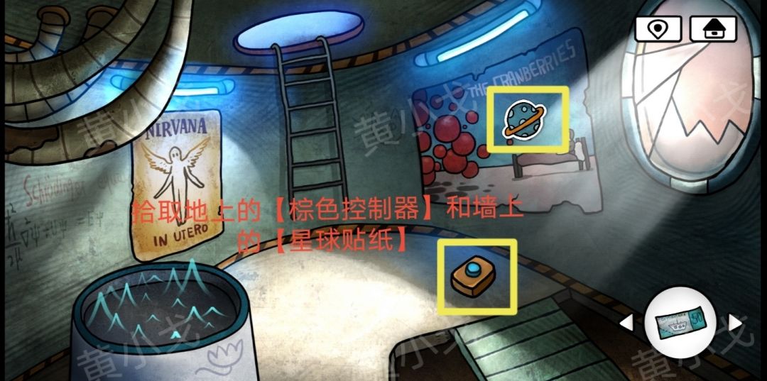 23.拾取地上的【棕色控制器】和墙上的【星球贴纸】