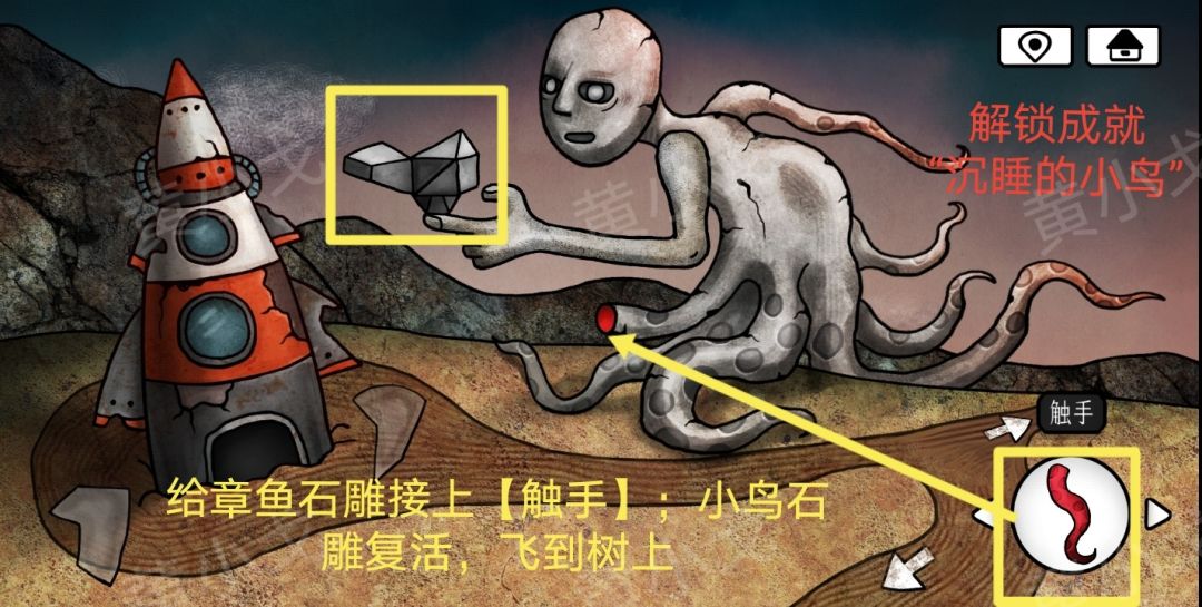 26.给章鱼石雕接上【触手】;小鸟石雕复活,飞到树上
