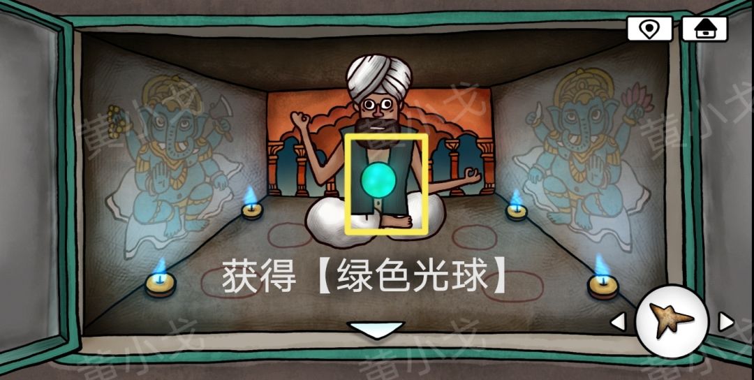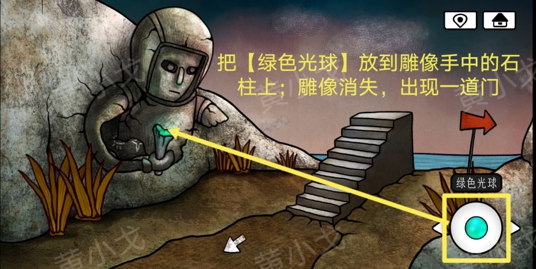 29.把【绿色光球】放到雕像手中的石柱上;雕像消失,出现一道门