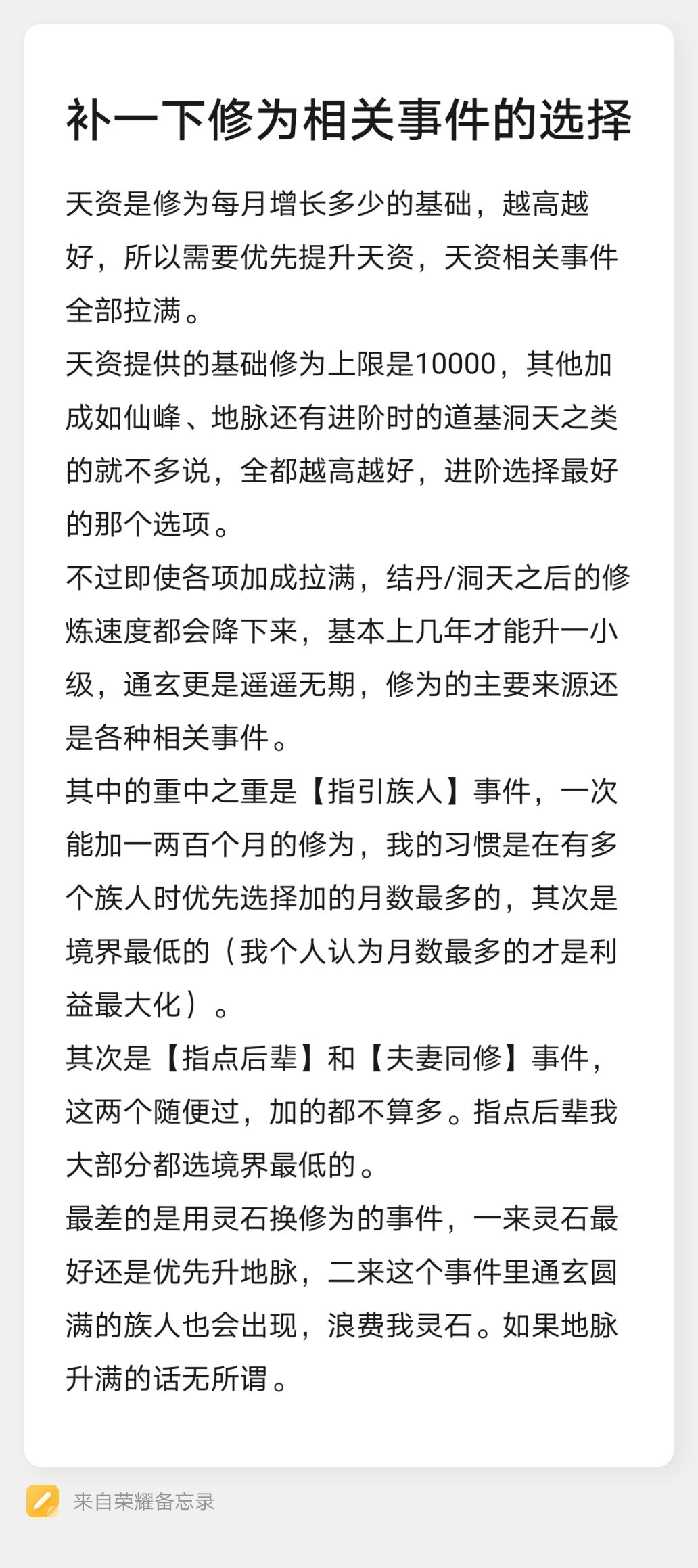 结婚对象的灵根最多比本身高1级,资质上限5000,所以开局先保持单身狂刷资质和修为,资质满5000后再结婚能利益最大化,修为也是越高越好,我这个档是60年左右刷好结的婚(p2)