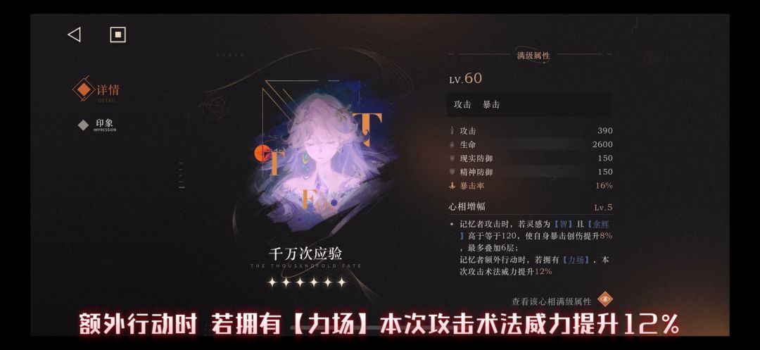 记忆者额外行动时,若拥有【力场】,本次攻击术法威力提升12%