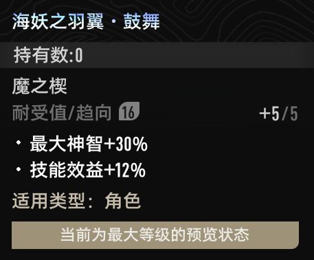 魔之楔自身也可以升级,最高为5级,随着等级的增加,属性&耐受值也会相应增加