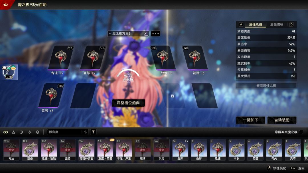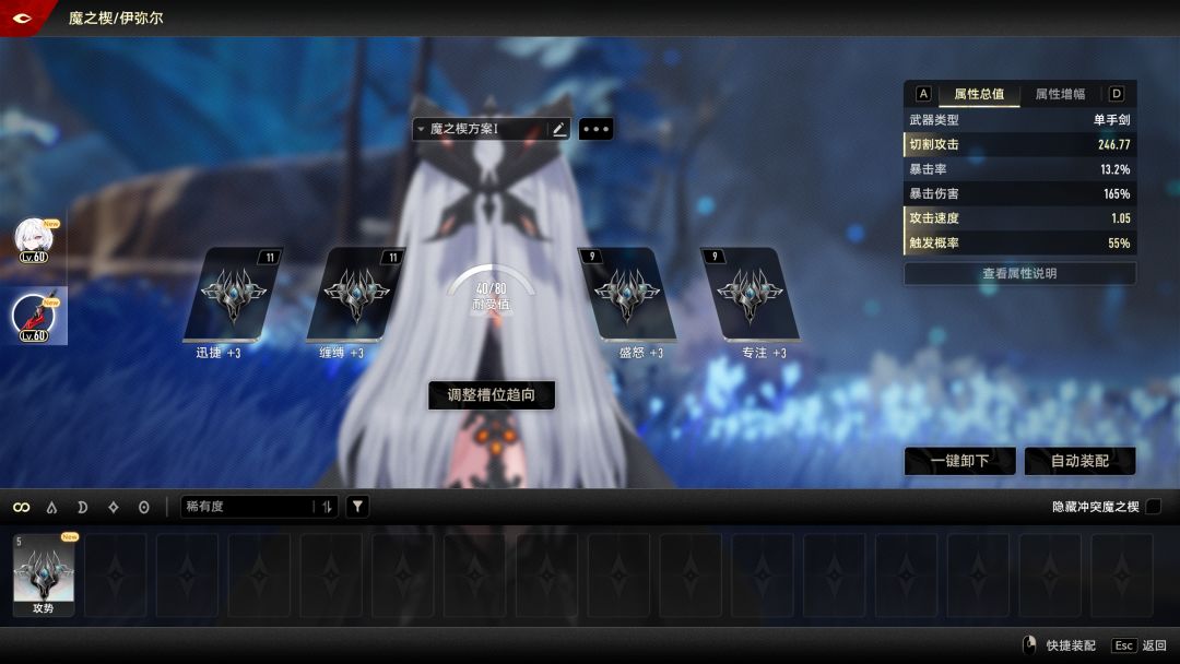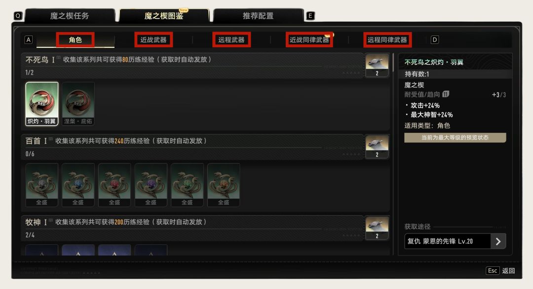 也就是角色、近战武器、远程武器以及同律武器分别需要单独搭配一套魔之楔,且相同类型魔之楔之间是通用的!