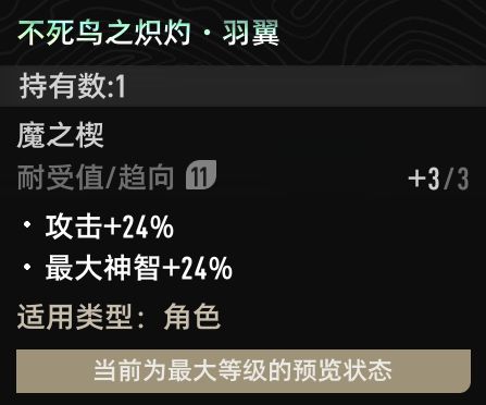 适配角色的魔之楔属性侧重为:生命/防御/护盾等