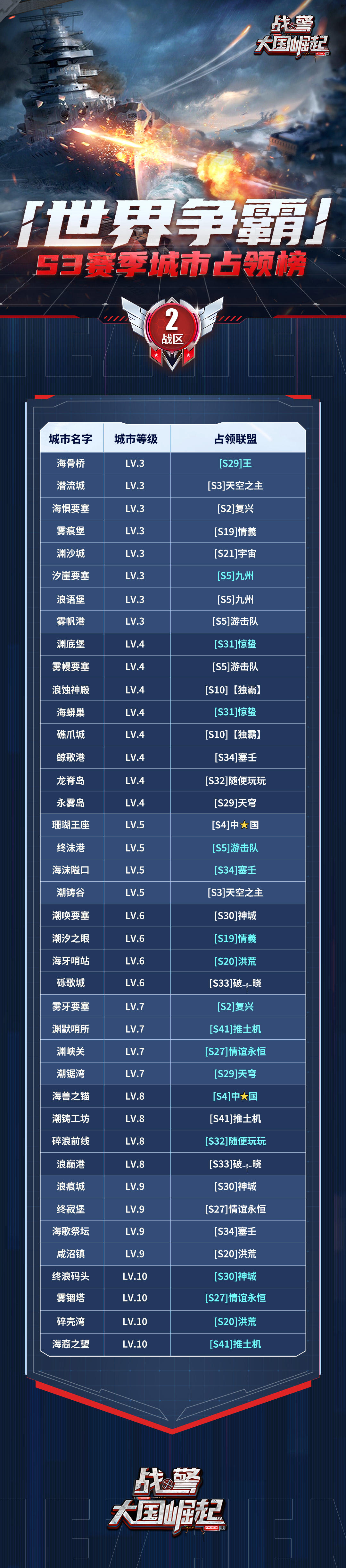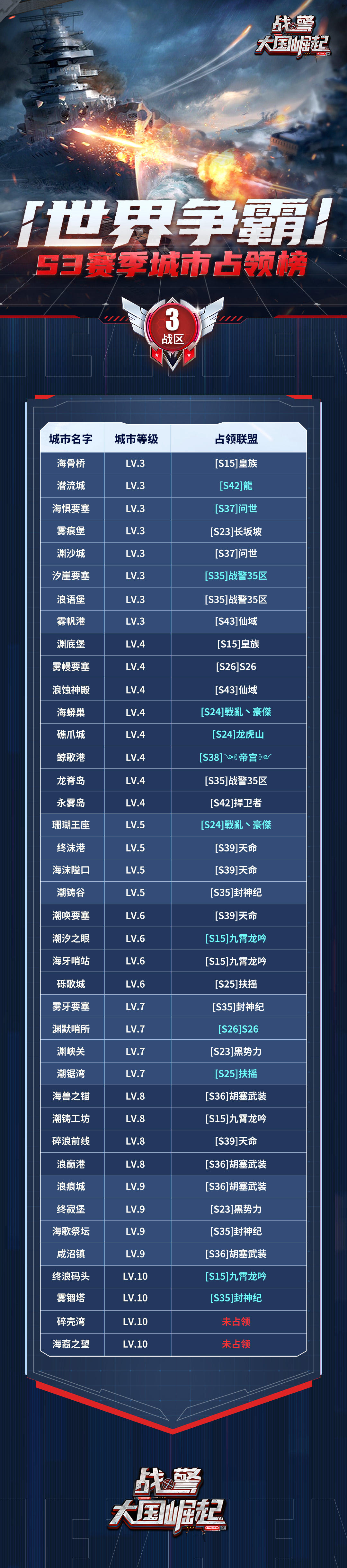 【海上速报】S3 赛季第五周世界争霸城市占领榜