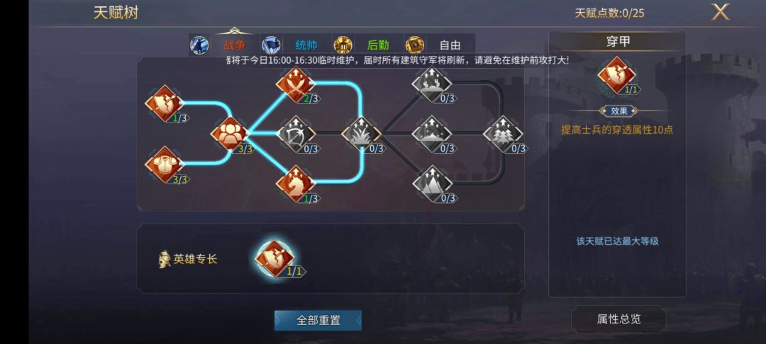④骑兵增伤和步兵增伤点满后,回头将‘穿透’点满;