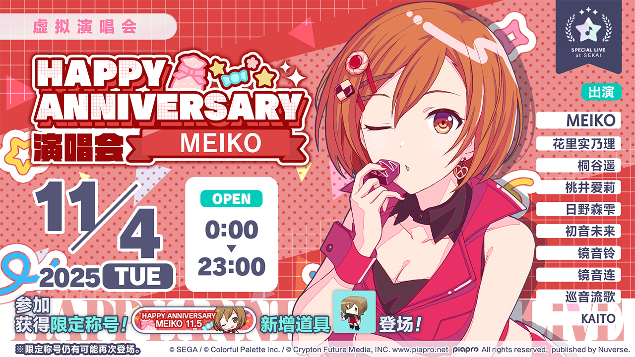 欢迎各位居民前往观看,一起庆祝MEIKO纪念日吧!