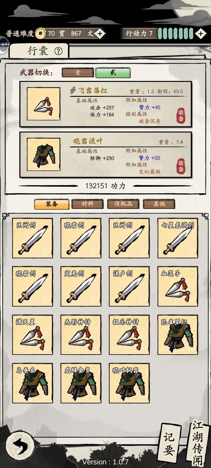 思路解析:前期把两本绿调息和绿蓬莱功法学起来,丝滑度过,中期循序渐进激活两蓬莱,后期武器注入千变和刚猛,有长生的回复,调息回蓝,附带一次致命伤回血(名刀),七星开局加蓝,有寒冰减速(对面减速等于自己人加速),千变30%无视防御,远程刚猛伤害拉满,最后再闭关一个附带增伤的剑法,即可功法大成。