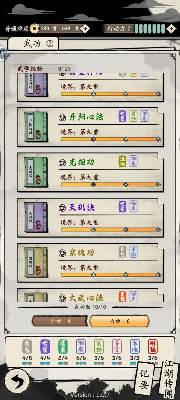 因为该方便道友们速刷点数,所以最后两个功法位留给道友们探索吧。