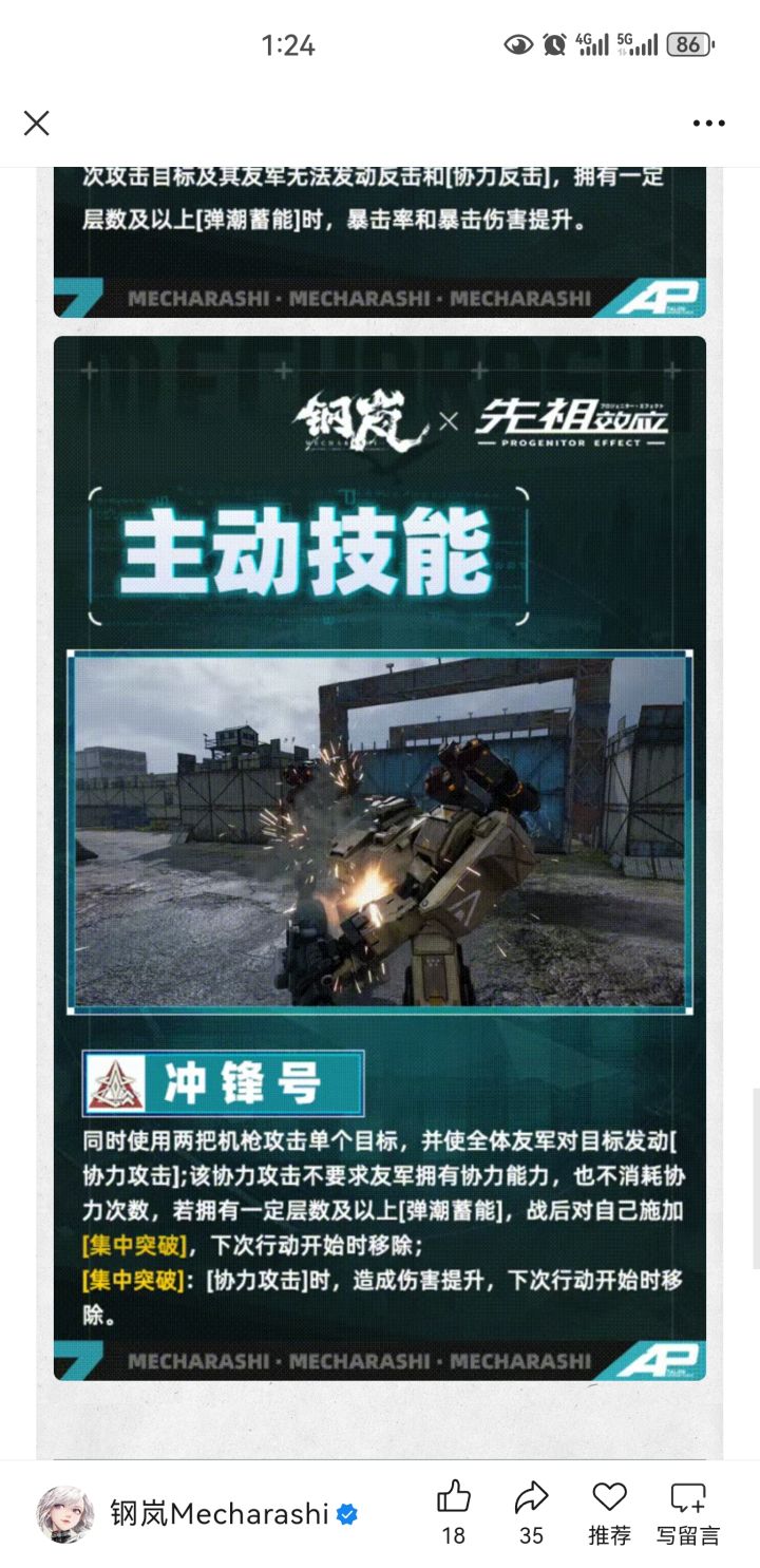 通过机甲判断攻击方式以协力攻击为主,所以该角色不可能走常规突击的上16,而且常规突击的上16只有两次协力攻击,不符合角色定位。