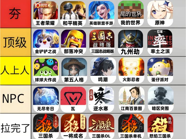 超真实的手游排行榜,从夯到拉,一次看够!