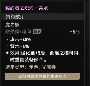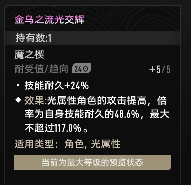生命加成绑上了技能威力,但你游4个光系角色都不吃生命加成,想拿24%技能威力加成必须舍弃96%的攻击加成,低人一等。