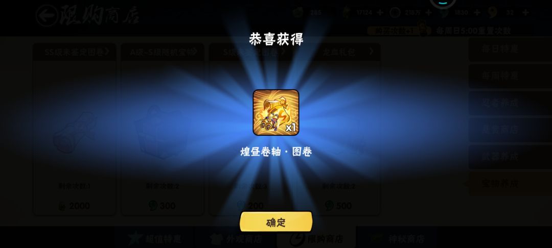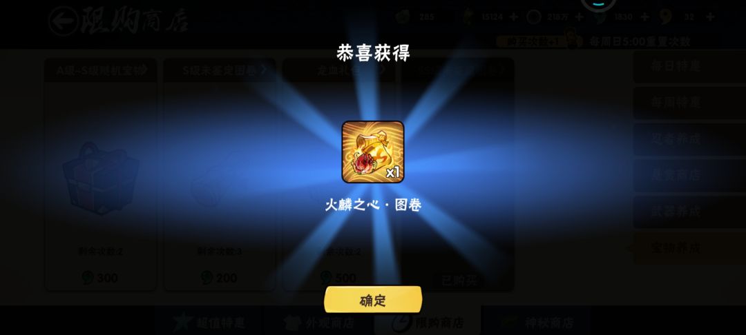 至此,宝物合成结束,剩余龙血15124。
