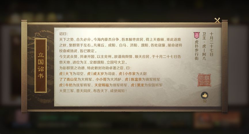 “上线了上线了,开国要来了!”