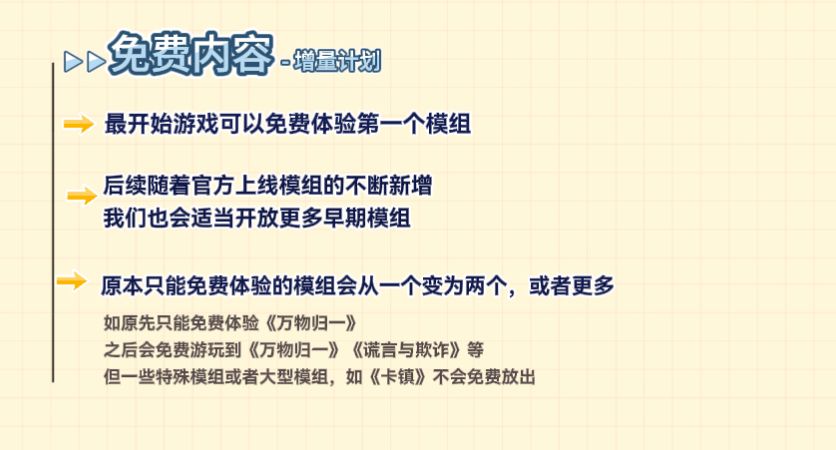 A:上线后玩家可以免费下载并试玩体验第一个模组,后续的内容可以用48元全部买断。