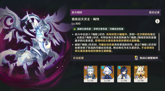首先,我们先来看看这期危战的boss,第一关是新出的霜夜巡天灵主,我们一般称之为天马。
