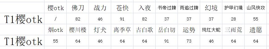 1.2、樱otk对阵情况大体如下(以北某人最新版本推荐卡组为例)。