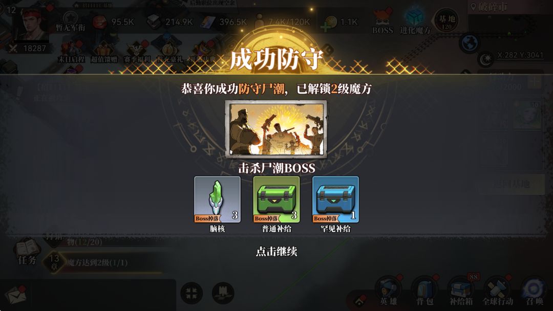 4. 积极提升魔方等级:蓝色英雄可以兑换“脑核”,而提升魔方等级不仅可以提升英雄进阶道具“脑核”的兑换比例,还能在提升魔方的过程中迎战尸潮,获取补给品奖励。