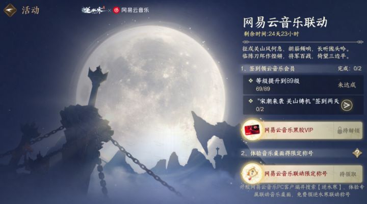 此外,10月31日至12月4日还将开启与云音乐的联动,在游戏内完成等级和签到任务,即可领取云音乐黑胶福利,在对应PC客户端体验逆水寒关山主题桌面,还可领取联动称号:“云乐关山”。