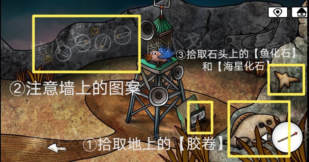 37.拾取地上的【胶卷】;石头上的【鱼化石】和【海星化石】