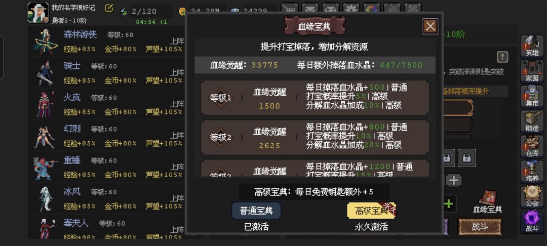 2.普通宝典的额外血水晶尽量打满,这样每天收益可以最大化。同时额外水晶满了今天就不要再打血缘副本了,收益大减。