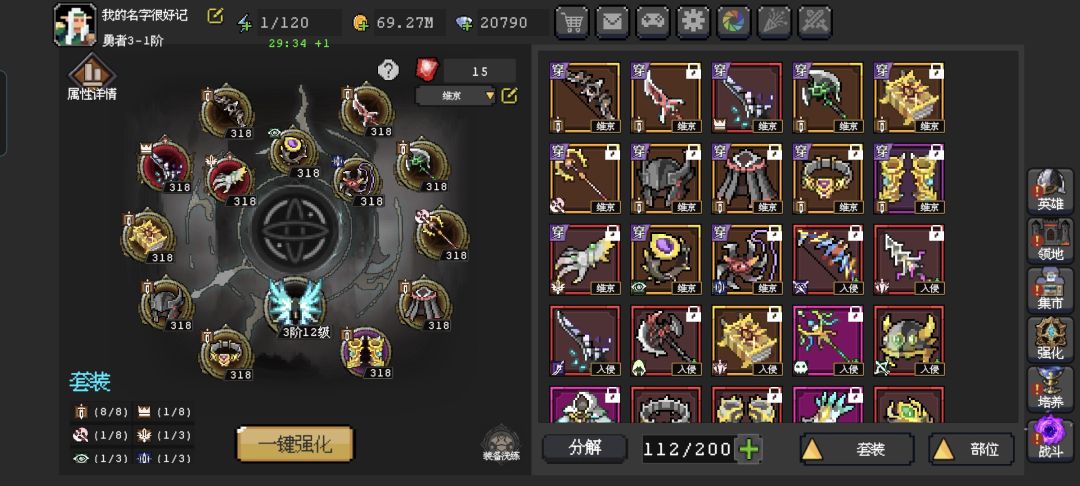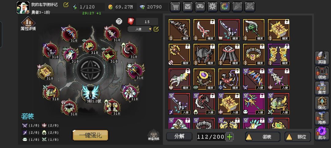 3.技巧,可以准备一页搞品质的装备,不用管套装,方便打入侵。