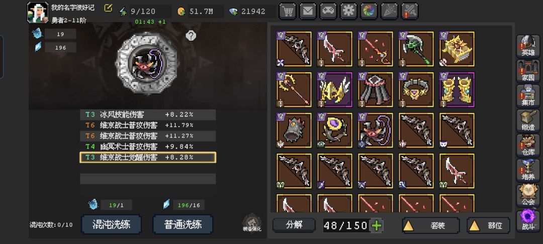 3.血缘混沌石,改变单一词条的类型,如:骑士普攻~~维京觉醒。(每个个角色4个,普攻、技能、绝招、觉醒,一共13个人物,4*13=52种)。所以概率为1/52=1.92%