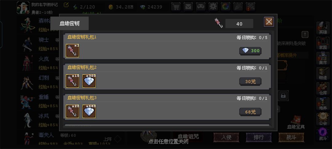 1.血缘宝典,全游戏性价比非常高的氪金道具。每天送5把钥匙=1500钻石。而且掉宝率后期增加一倍,分解血水晶增加二倍。